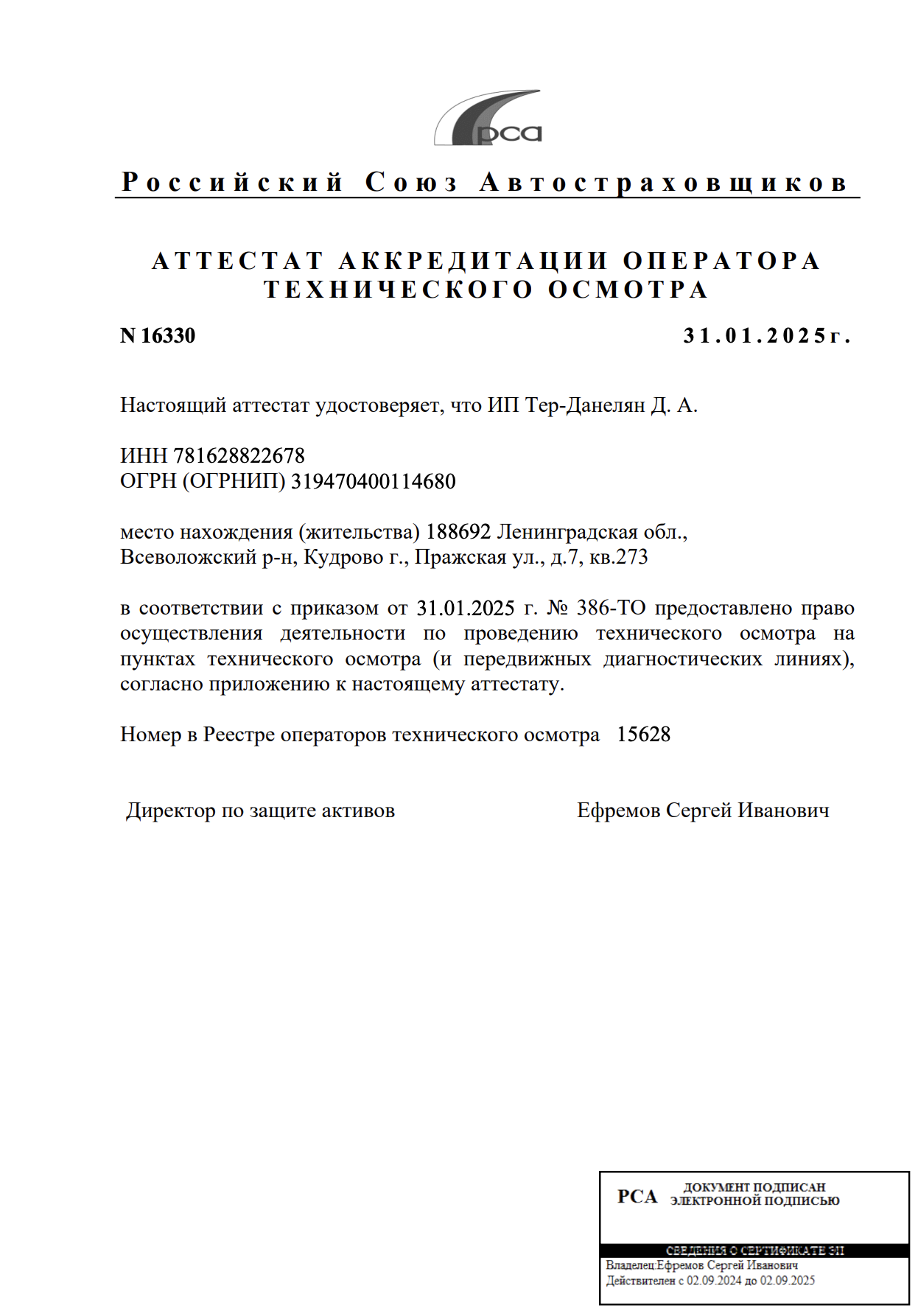 Пункт технического осмотра: оператор ИП Тер-Данелян Д. А.